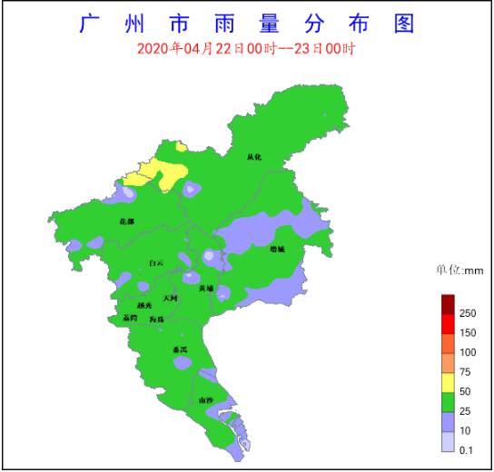 2020年4月21日夜間到22日夜間,受500hPa高空波動、850hPa倒槽影響,我市有持續(xù)性降水,累積雨量大雨,局部有暴雨。據(jù)氣象水文監(jiān)測站網(wǎng)統(tǒng)計(jì),22日0時(shí)至23日0時(shí),全市平均雨量32.4毫米,10個(gè)站點(diǎn)(2%)錄得50~100毫米降水,239個(gè)站點(diǎn)(57%)錄得30~50毫米降水,南沙區(qū)黃山魯森林公園錄得全市最大雨量66.8毫米。各區(qū)最大雨量分別為(單位:毫米):越秀41.4,荔灣48.2,天河45,海珠45.8,黃埔42.9,白云64.5,番禺42.3,南沙66.8,花都59,從化56.7,增城44.5;全市44個(gè)(13%)測站出現(xiàn)6-7級陣風(fēng),南沙區(qū)龍穴街錄得全市最大陣風(fēng)15.9米/秒(7級)。