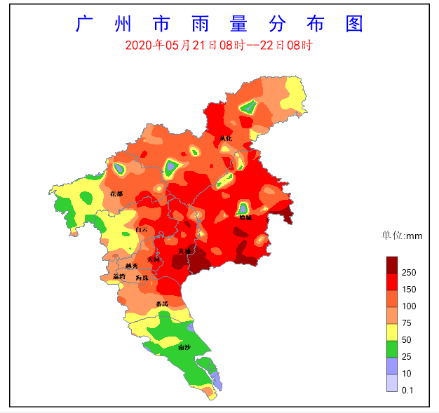 21日夜間至22日早晨廣州普降暴雨到大暴雨,局部特大暴雨。這次暴雨具有強度大、范圍廣、面雨量大的特點。